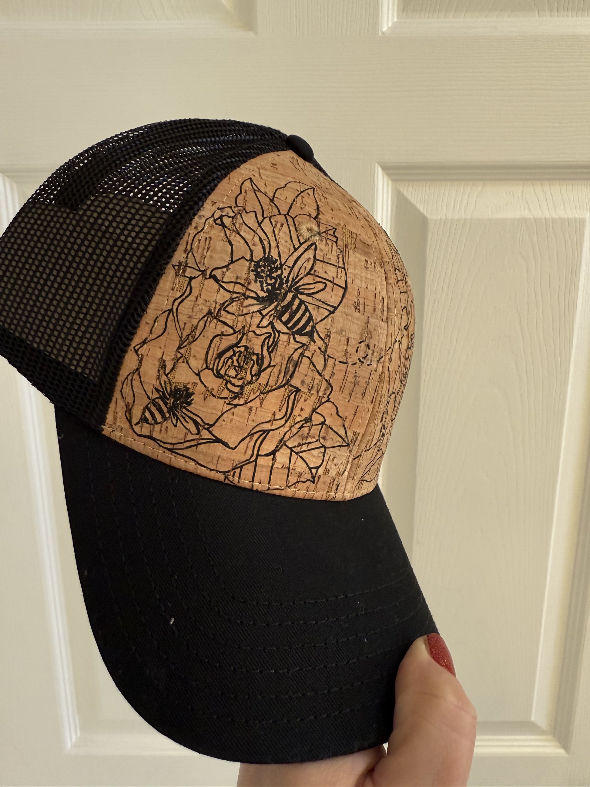 2 Cork hats with bee and hummingbird. As shown in pictures.