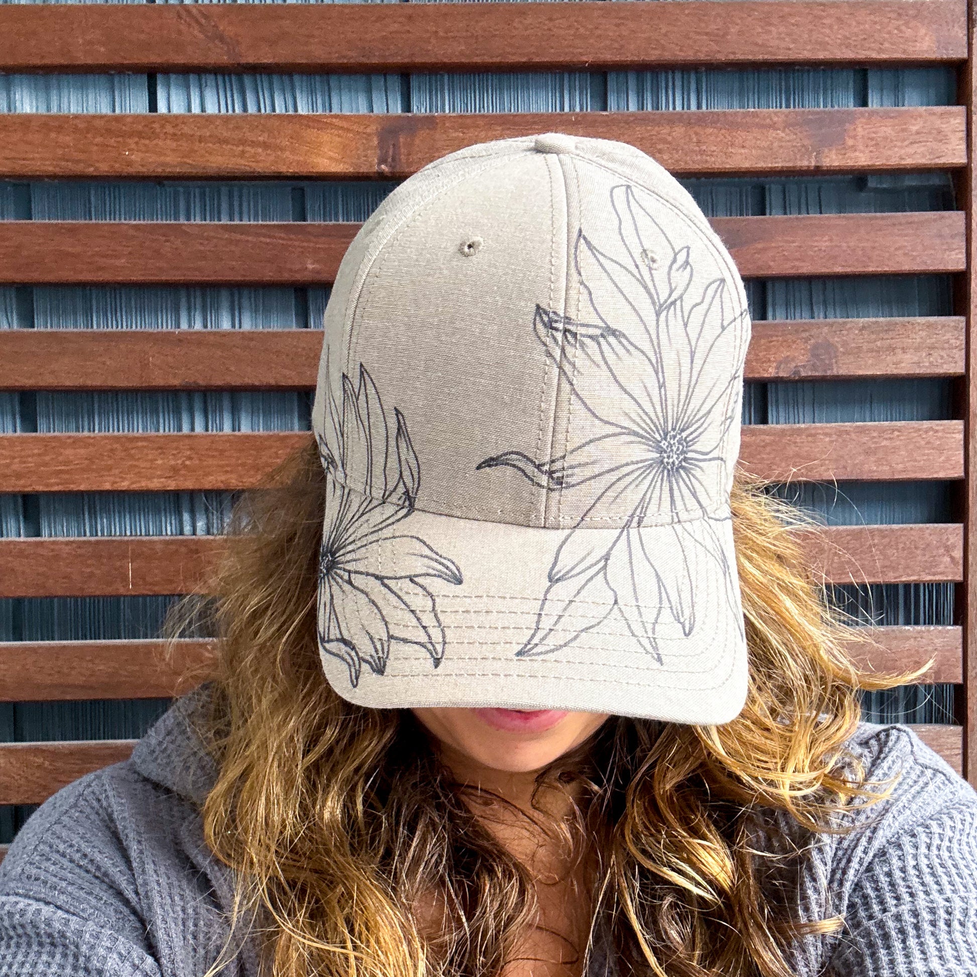 Each hat is hand drawn with a variety of flowers and sealed for the design to have long wear.