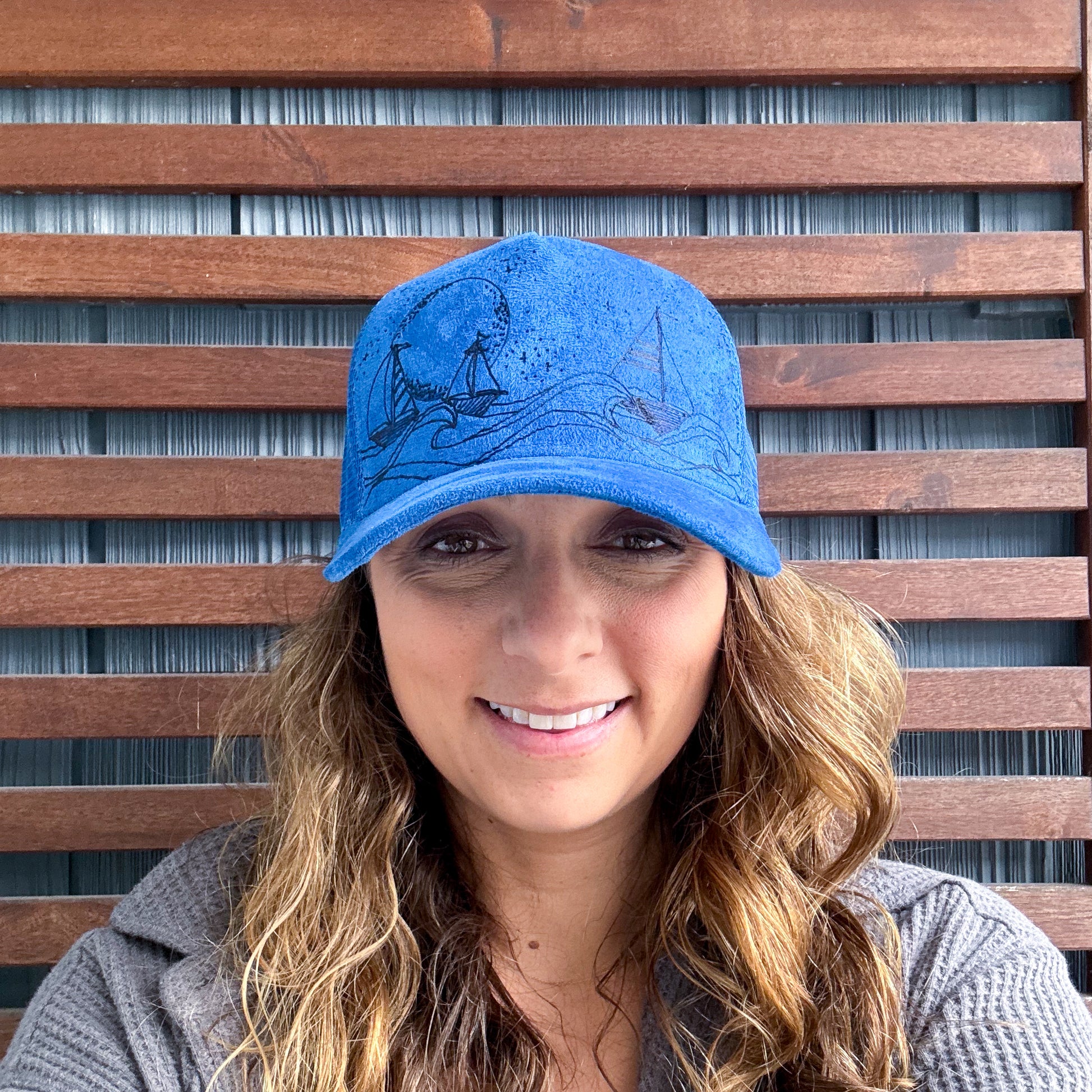 Blue Suede Front Burned Sailing by Moonlight Trucker Hat