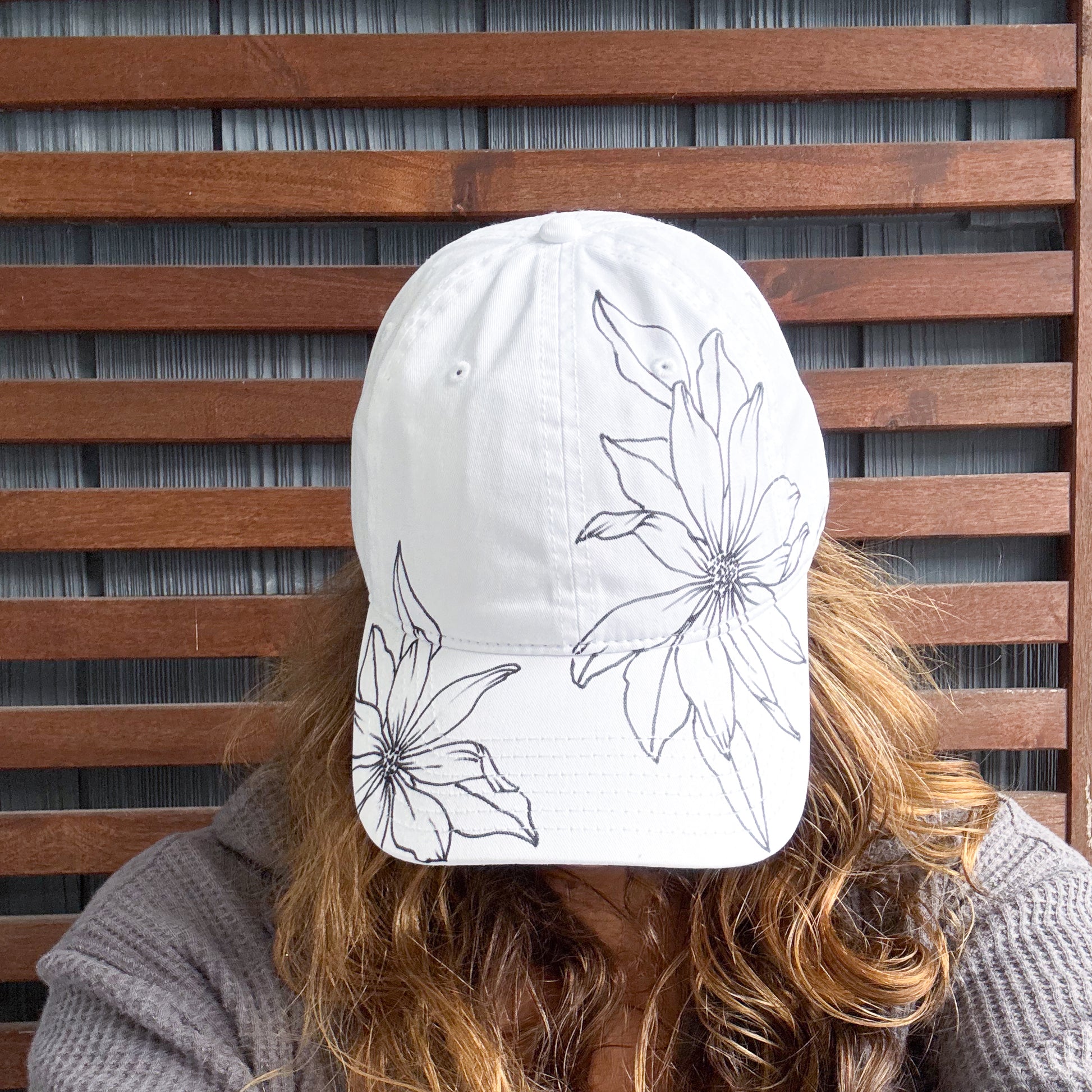Each hat is hand drawn with a variety of flowers and sealed for the design to have long wear.
